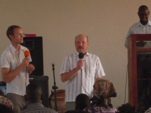 Vi danske kirkegængere blev budt velkommen og her fra gruppen fortalte Flemming på gruppens vegne at der trods kulturforskelle og sprog var Gud den samme om vi holdt gudstjeneste i Mozambique eller i Danmark.