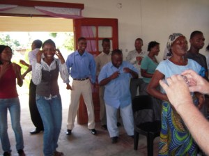 Det var for os alle en rigtig stor og god oplevelse, hvor vi oplevede glæden og fællesskabet og ikke mindst deres kropssprog igennem sang og musik var ukendt for os. Her mangler vi rytmen med dog kunne vi hurtig synge med. Vi oplevede her troslivet gennem følelser.