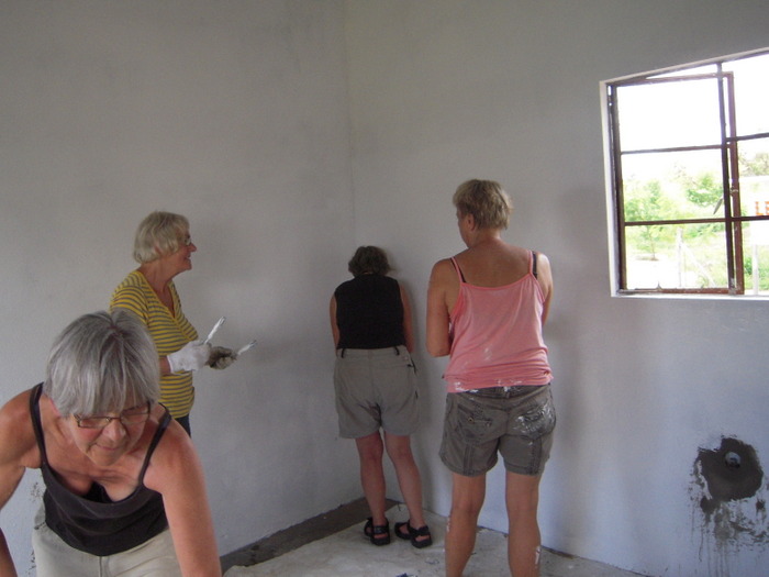 Mandag var afsat til maling af kontor og gæstehus. På grund varmen og ventetid nåede vi kun at male indvendig.