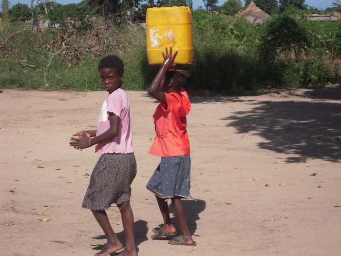 Vandforsyningen virker nu perfekt og landsbyens beboer henter vand i 25 liters dunke. Pris 20 øre.