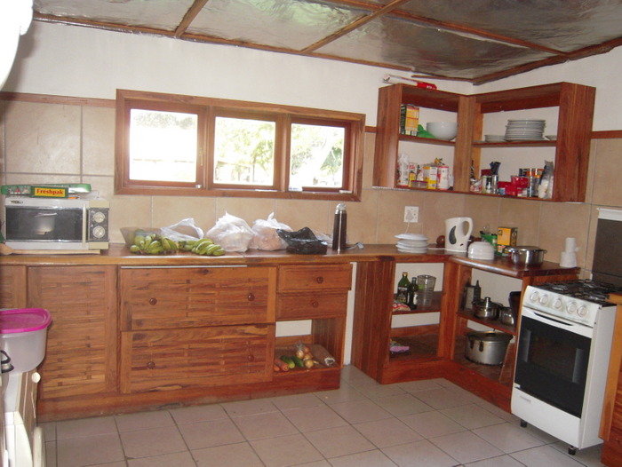 Da varmen blev for voldsom efter frokost klokken 13:00 kørte vi hjem til pølen. Her er vores opholdsstue og HTH køkken.