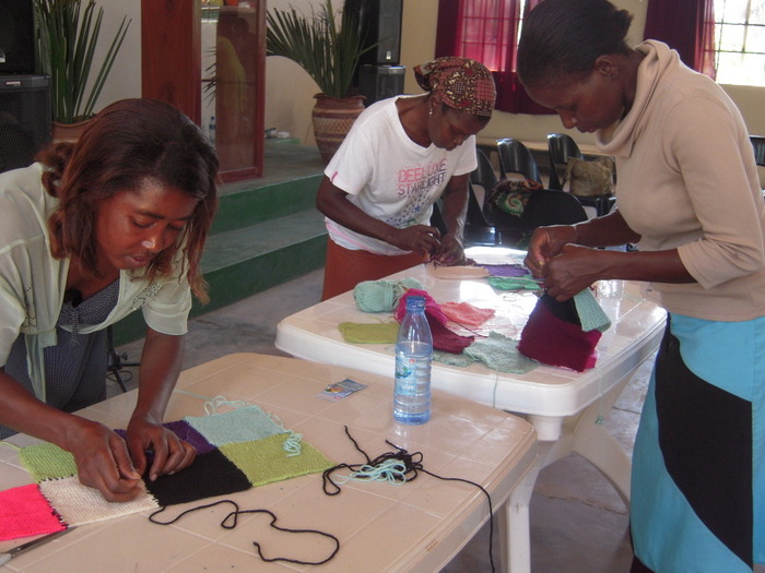 Strikkepigerne lærte at sy strikkelapperne 30×30 sammen. De havde haft strikkepinde og garn med hjemme og viste stolt deres hjemmearbejde frem. Målet var nået, de kunne starte og slutte og sy sammen, og de var stolte. Pigerne blev så frie, at de spontant brød ud i sang mens de arbejdede.