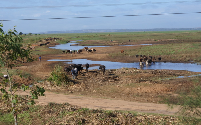 Mændene blev læsset af på landbrugskolen og kvinderne fortsatte til Xai-Xai – undervejs tog vi dette billede – vandet synker efter oversvømmelsen
