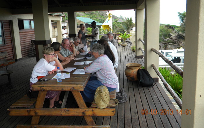 Efter morgenmad kl. 06.15 kørte vi i kirke i Xai-Xai. Under gudstjenesten er meget sang, dans og musik. som måske kan ses på billedet.