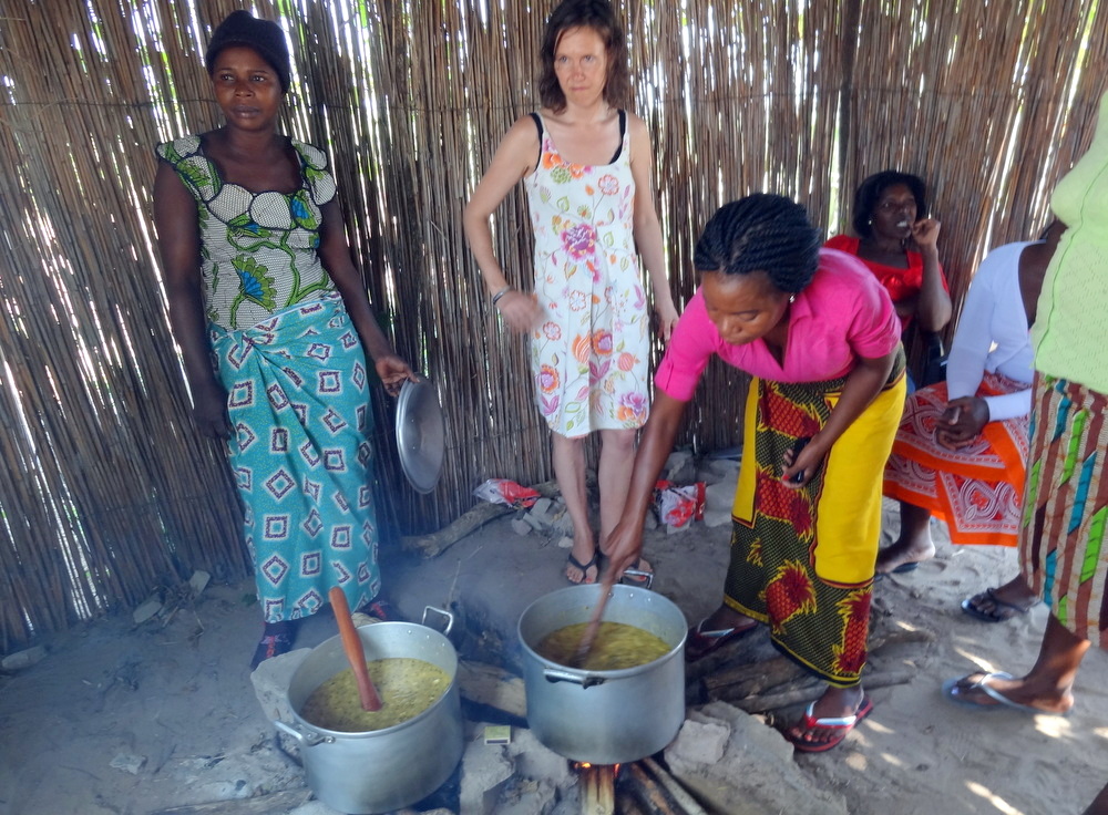 Man tager – tre poser bananer, tre fade passionsfrugt, revet skal af 10 hjemmedyrkede citroner samt saften af 15 citroner, 5 kg sukker, 7 mozambiquiske kvinder, 7 danske kvinder, to bål i en hytte, diverse gryder, skeer m.v. samt en præst.
