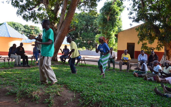 Der blev ringet på en klokke og de ældre indfandt sig efterhånden. De sang og nogle sange dansede for os.