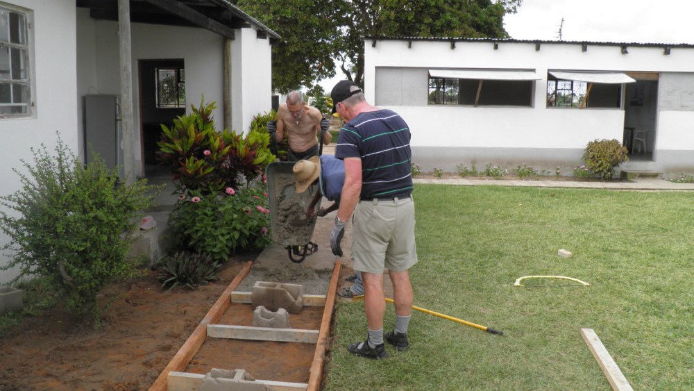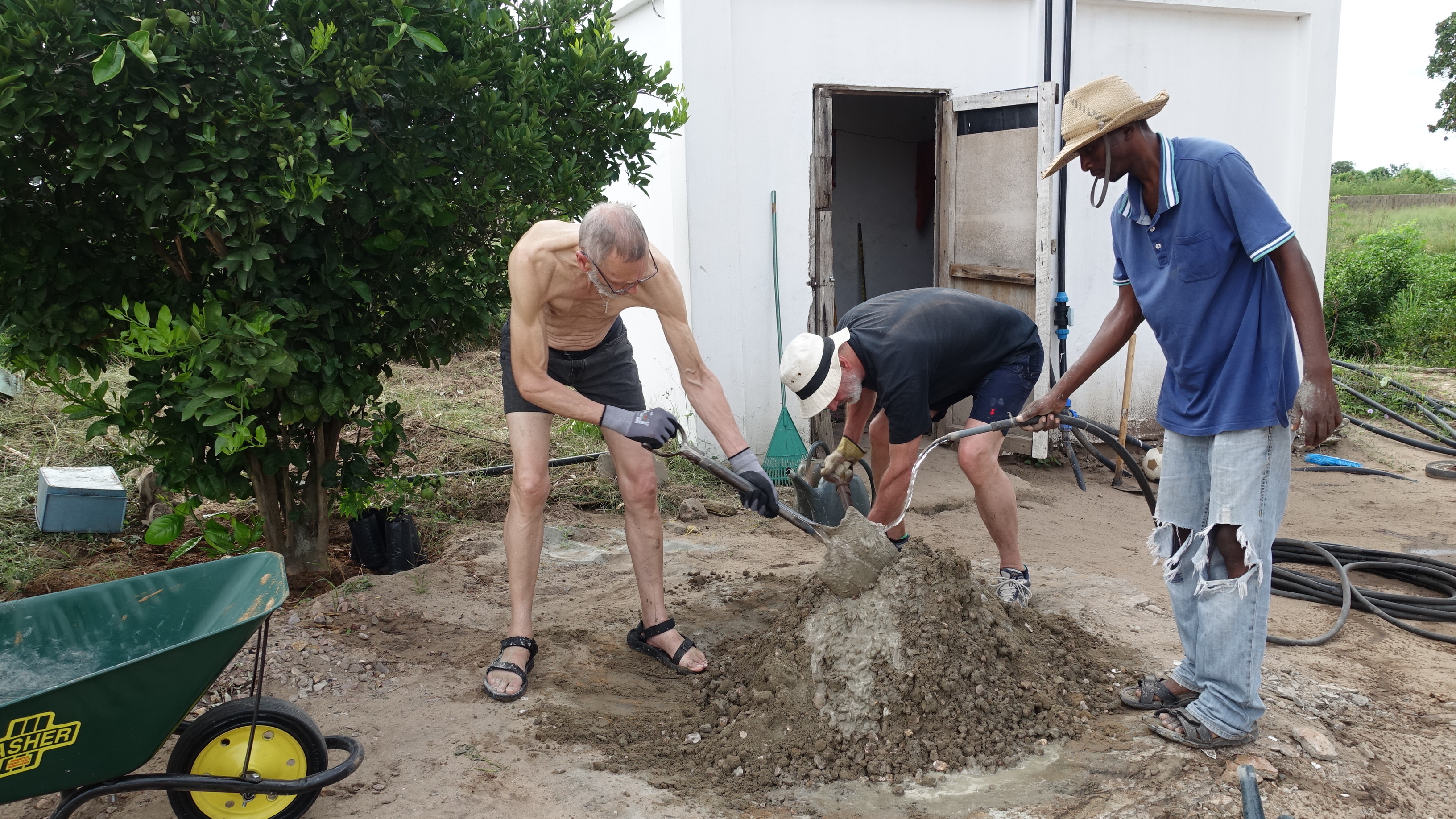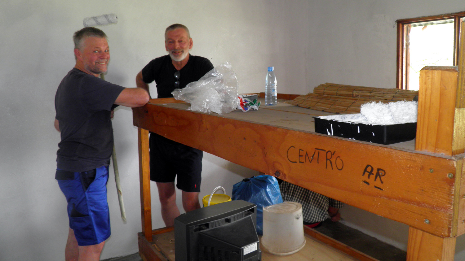 I dag, torsdag startede vi kl. 07.00 på skolen, hvor vi straks gik i gang med maling, flise- og glarmesterarbejde. Med høj sol og sved på panden trængte vi til formiddagskaffe kl. 9 sammen med skolens elever.
