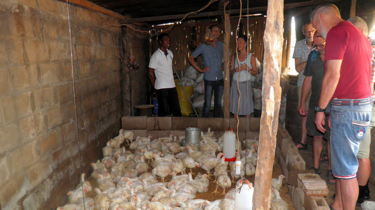 I dag fredag har vi været ude at besøge en af sidste års elever: Inocêncio, 20 år og fortsat i gang med en landbrugsteknisk uddannelse, men samtidig i fuld gang med landbrugsproduktion sammen med sin mor. 250 kyllinger i stalden, plus grise og ænder.