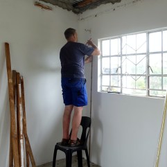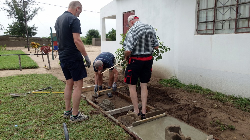 Ude på skolen startede de forskellige arbejdsophold, støbning af de næste fliser, forberedelse af opsætning af loft i Ginas kontor, og der er fortsat gang i glarmesteriet.