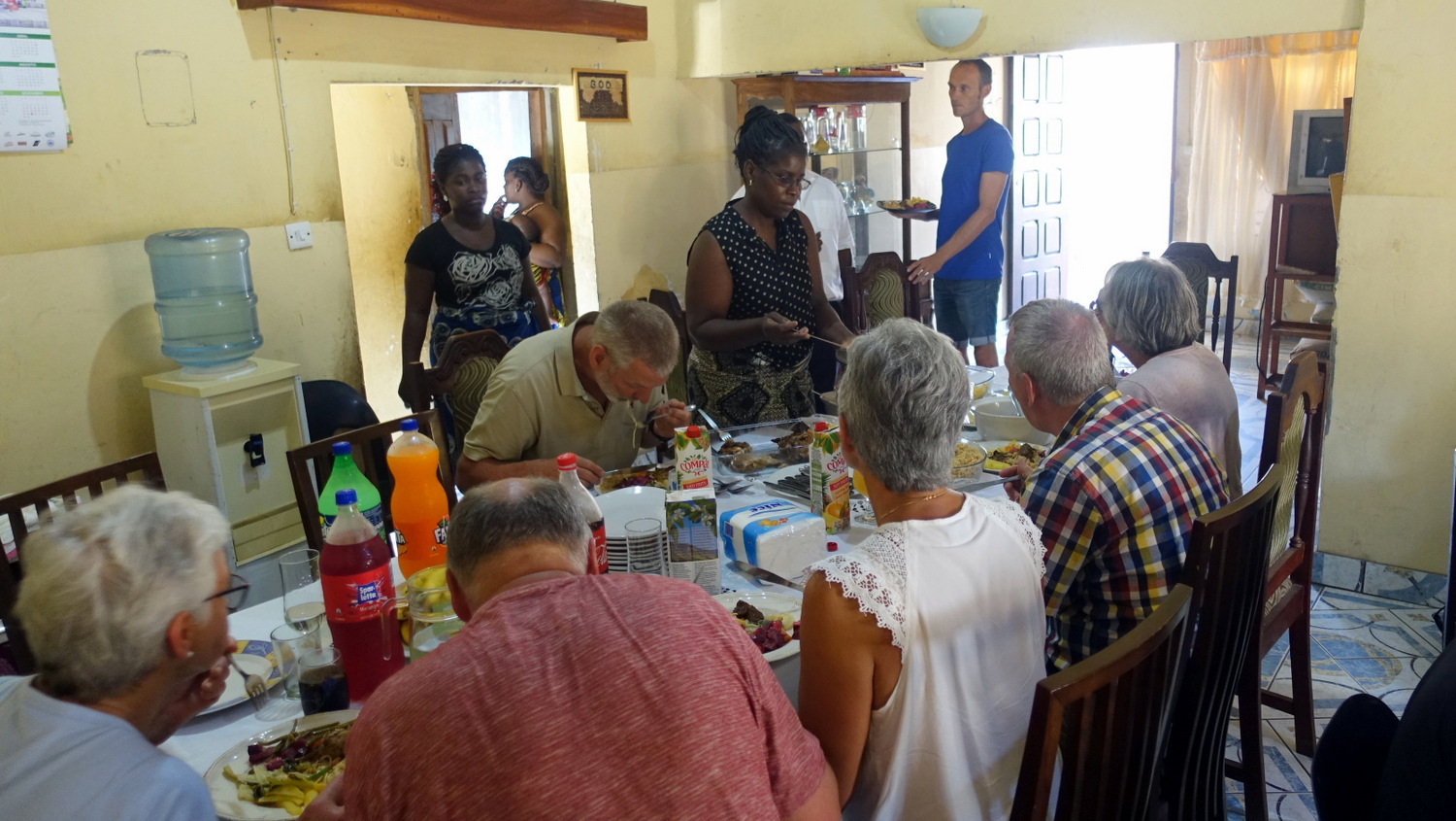 Herefter gik turen hjem til Pastor Jorge, hvor vi blev budt på frokost, men først går værten rundt med vand, så vi kan vaske vore hænder, inden vi skal spise.