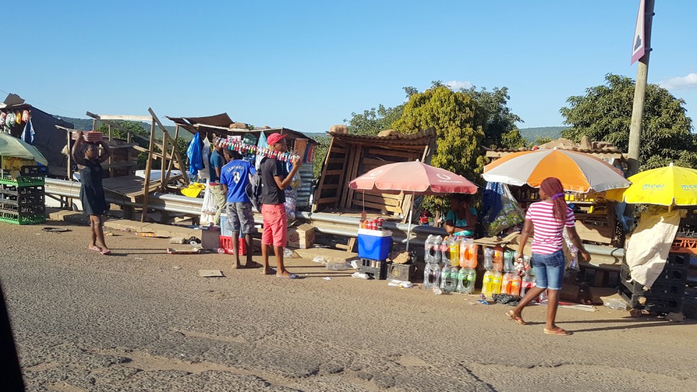 Efter en hjertelig afsked med søstrene drog vi ud af Maputo i vores nye bil med aircondition, hvor dejligt! Undervejs mod grænsen oplever vi fortsat Mozambique med de mange boder langs vejen.