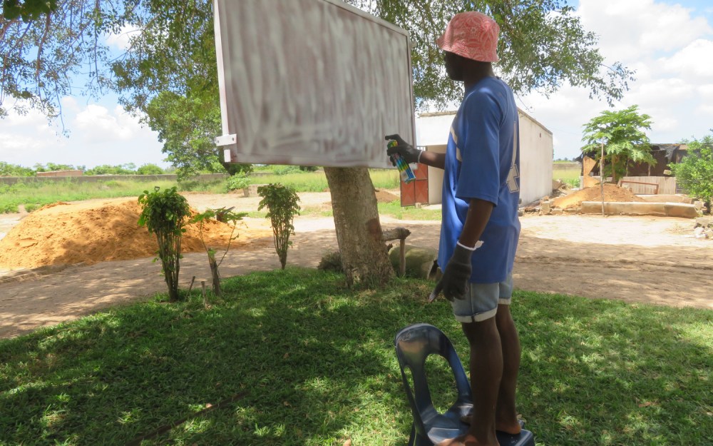 Efter morgenmad kørte vi til landbrugsskolen med ankomst kl. 7.00. Vi fortsatte med arbejdsopgaverne fra dagen før, dog begynde vi også med maling af soklerne. Skiltene fik den første maling. Endnu flere vægge blev pudset.