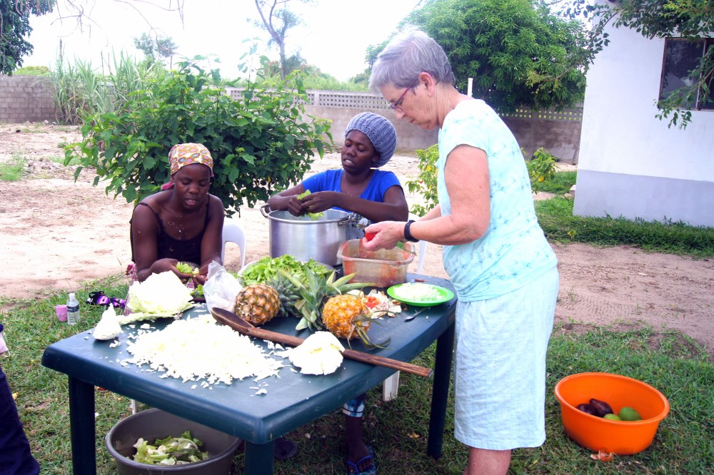 Nina Marie har køkkentjansen sammen med Lídia og Flora.