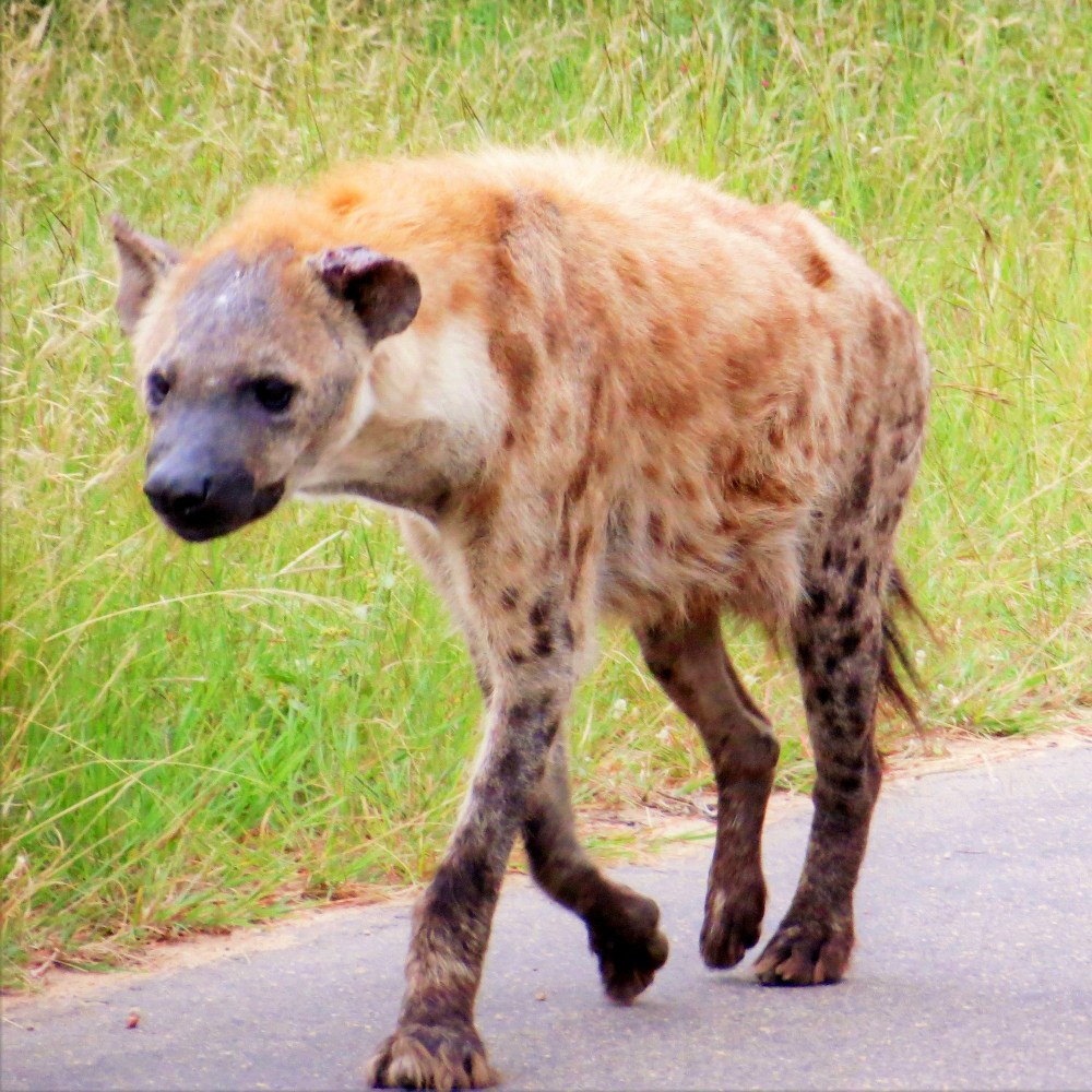 Sidst på eftermiddagen luskede hyænen hjem efter en travl dag i parken ved Gate Malelane