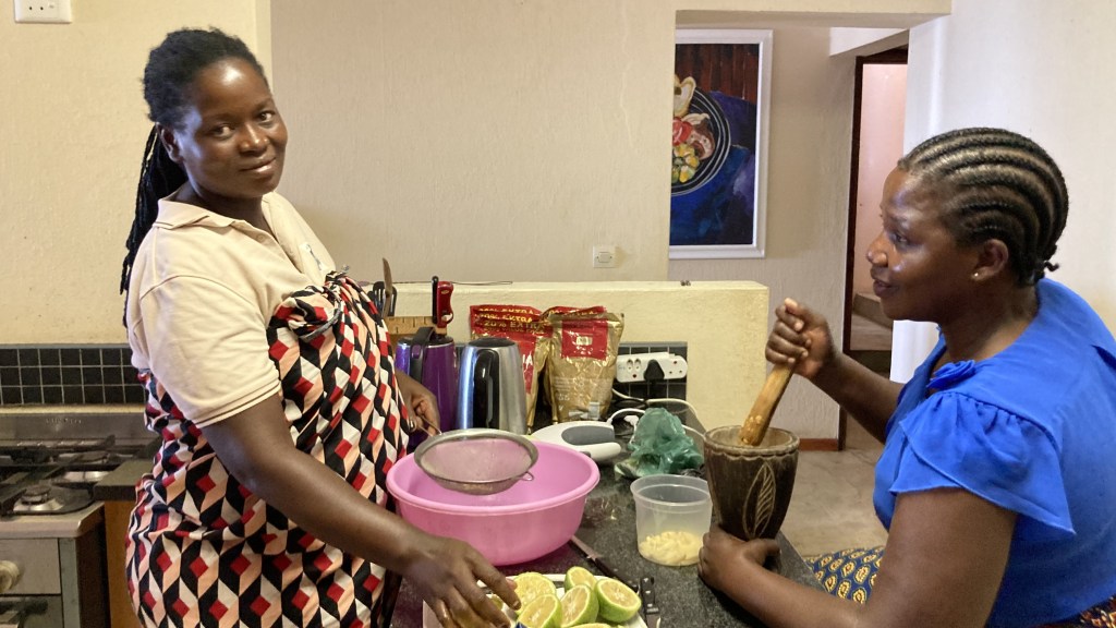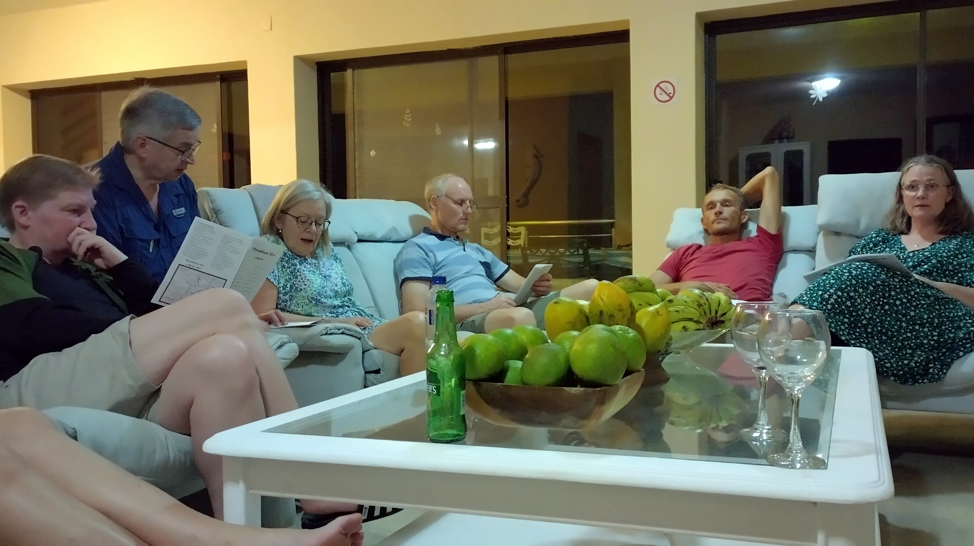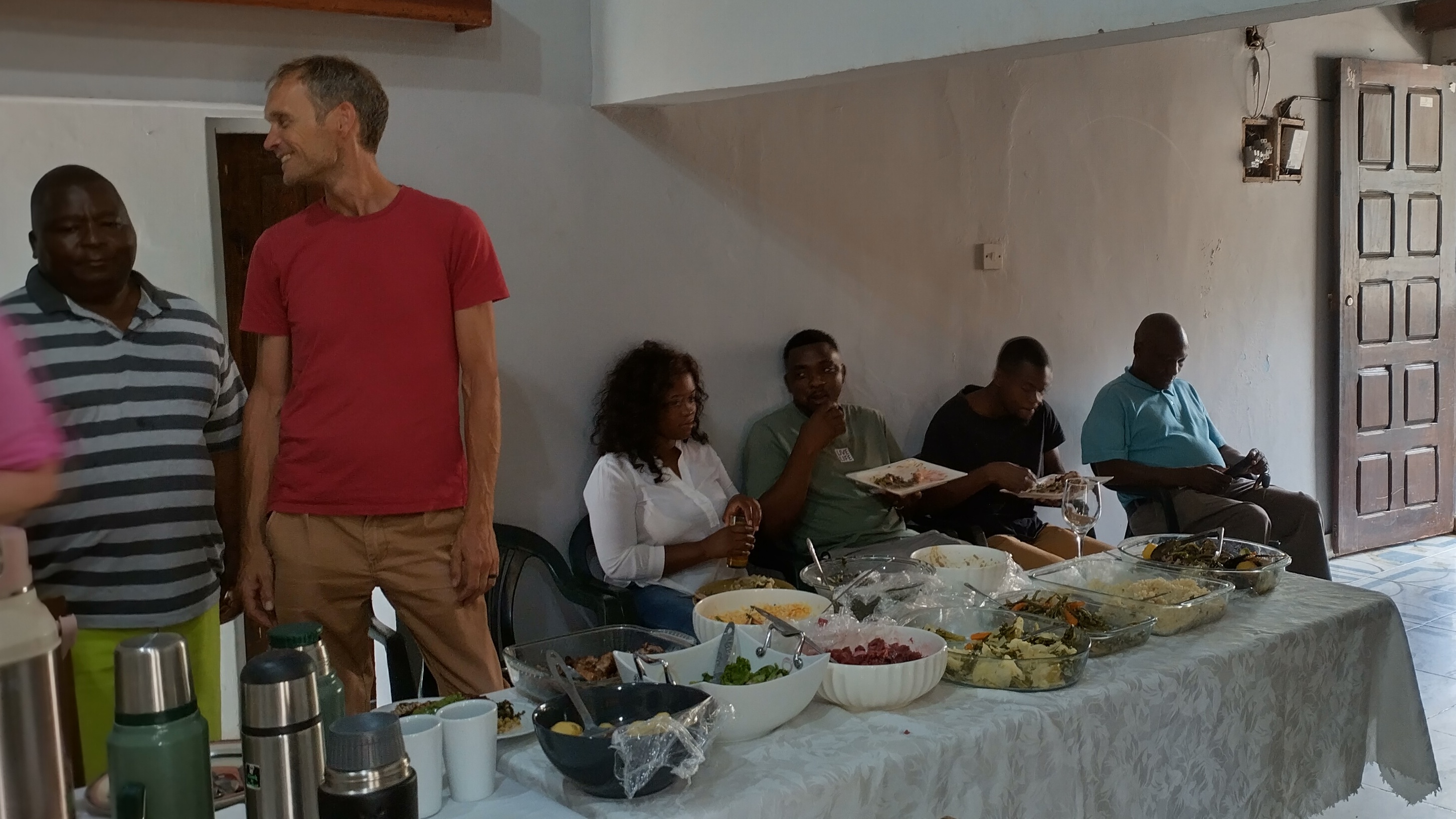Undervejs besøgte vi Pastor Jorge i Maputo. Det var der, Lisbet og Kurt boede de første 3 uger, de var i Mozambique. Her spiste vi frokost, hvor vi blev serviceret med lokale specialiteter. Vi hørte om Pastor Jorges liv. Det var en stor overraskelse, at han kunne ret meget dansk, da han som ung, havde været i Norge og Danmark i henholdsvis 5 og 4 uger.