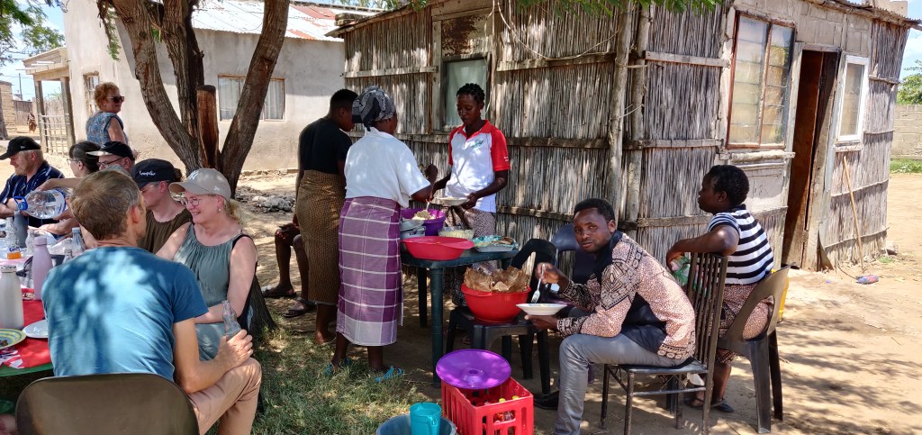 Uanset hvor vi har været på vores tur i Mozambique, har vi mødt smil og en utrolig gæstfrihed. Sådan var det også her, hvor naboer kom og hjalp til. Alle vil gerne vise deres hus og arbejde frem for os.
