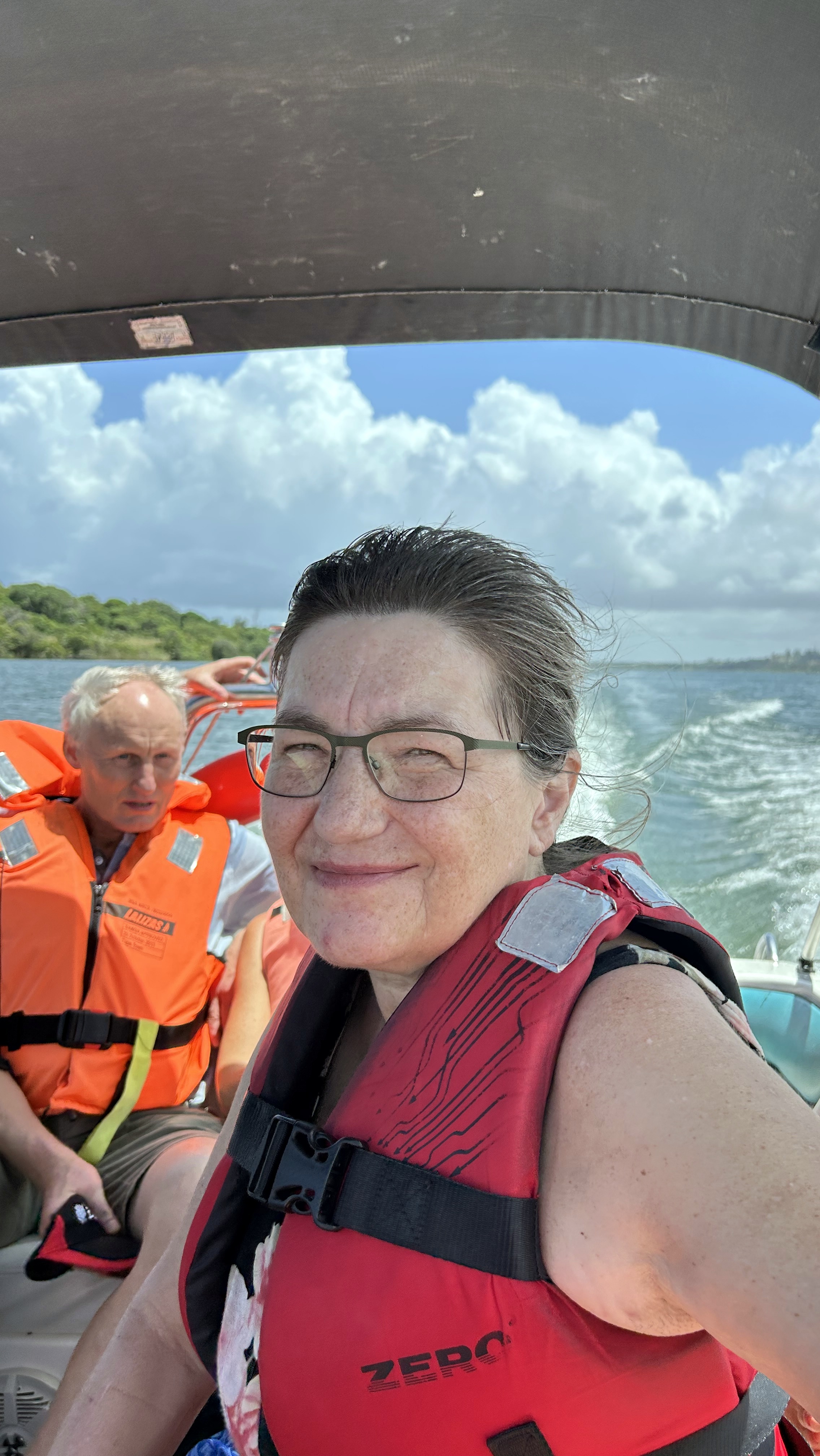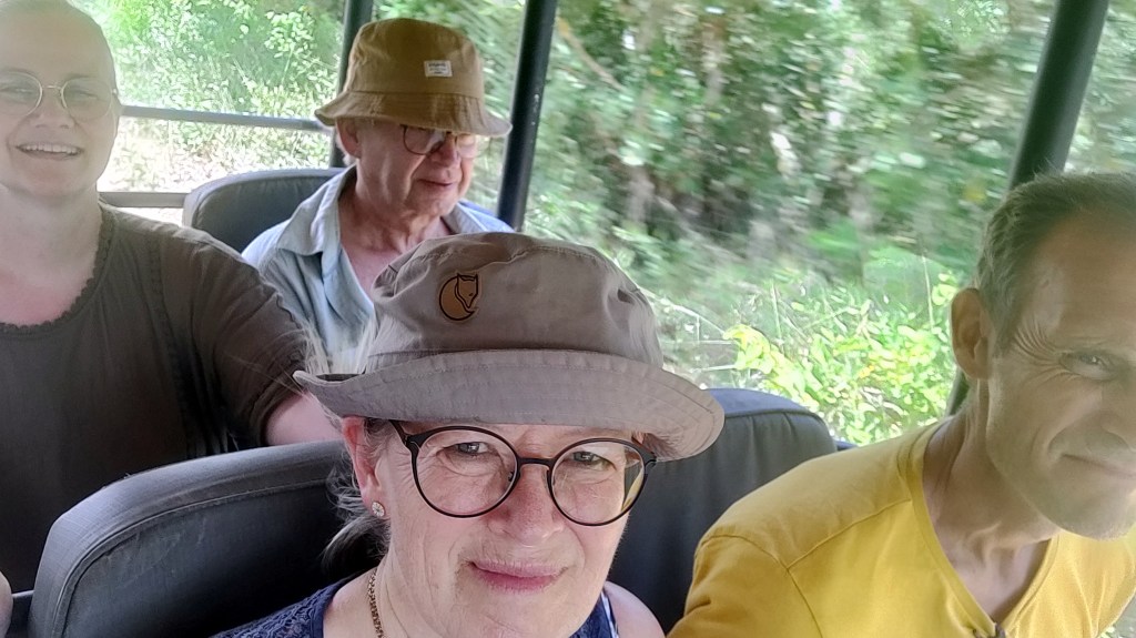 Vi kunne ikke køre til Lodgen i vores bus pga vejforholdene. Vi delte os i 2 hold. Det ene hold kørte med 4-hjulstrækker, det andet hold sejlede. Så byttede vi på hjemturen. På vej derud havde båden lidt motorproblemer. Bilen dyttede når der kom et sving med dårlig oversigtsforhold for at advare modkørende. Vi nåede sikkert frem.