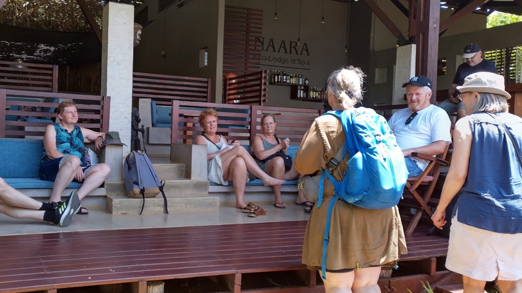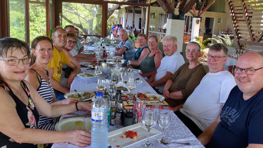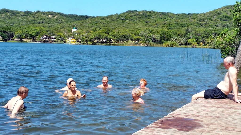 Vi nød hviledagen med badning i sø og pool og god mad i deres restaurant.