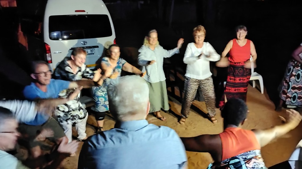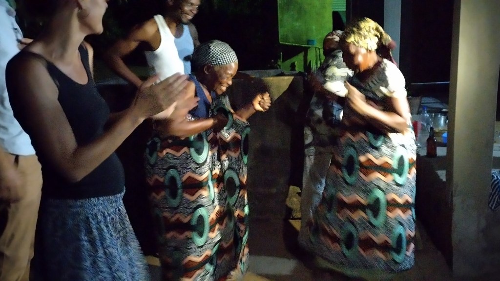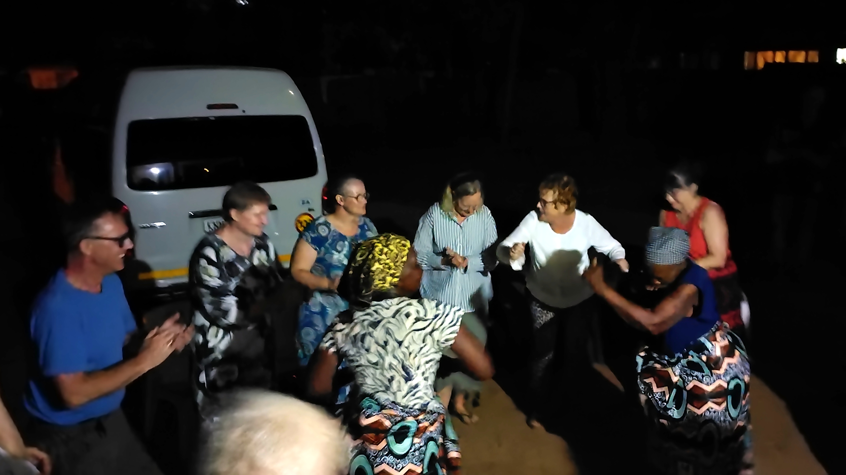 Så gik turen hen til Ginas bedstemor, der viste sit hjem frem, serverede dejlig aftensmad og fik os alle med til at danse. Der er nogle bevægelser, der falder os meget svært, men vi havde det vældig sjovt.