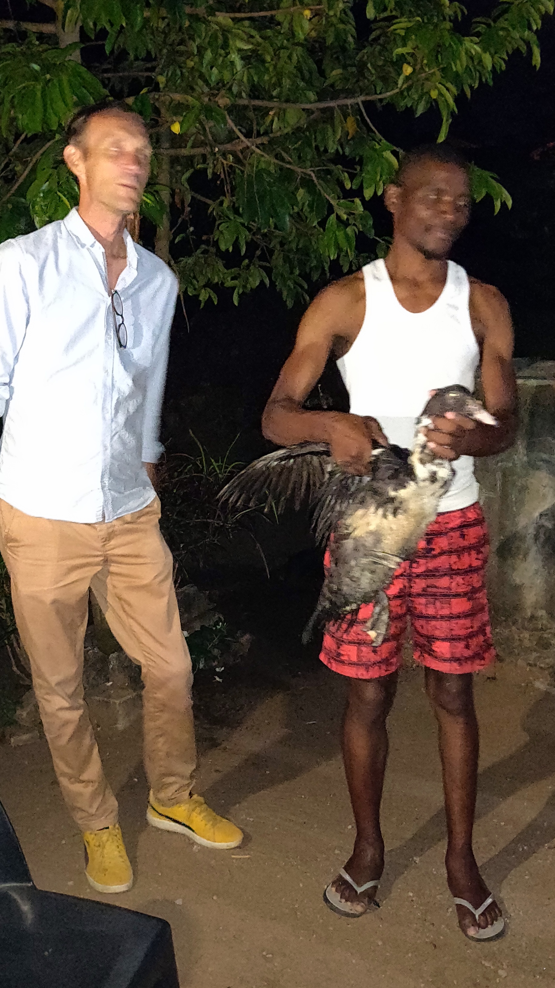 Vi fik heldigvis lov til at give dem nogle kyllinger, noget ris, olie, og sæbe.
