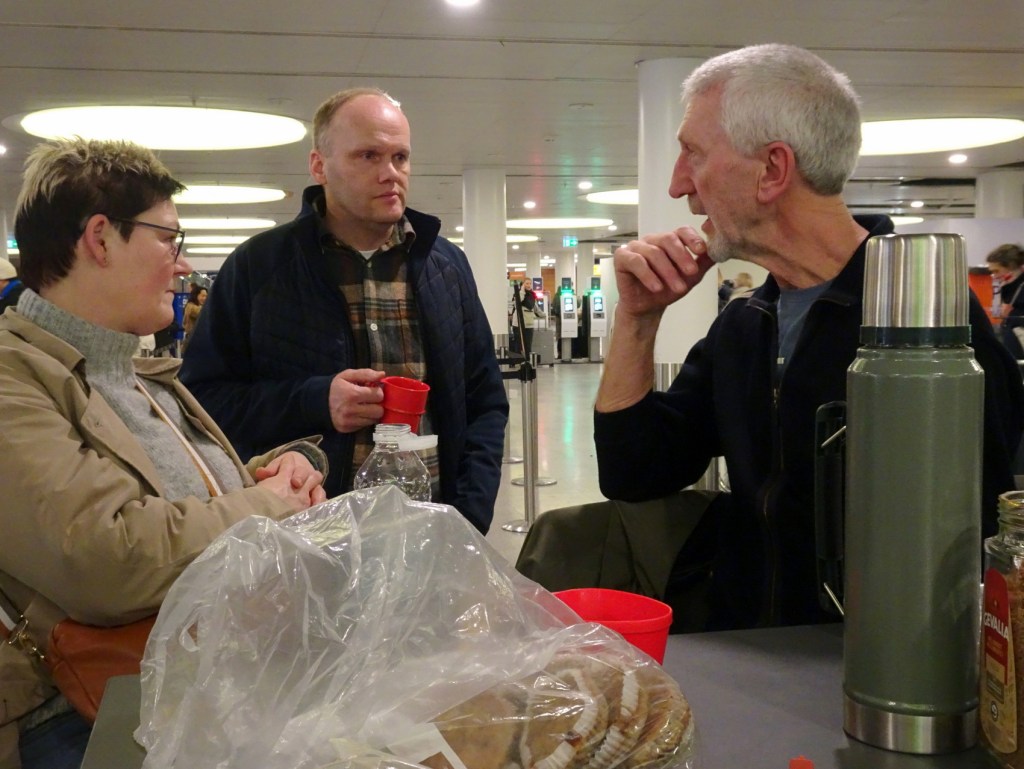 Det lykkedes for alle at nå frem og samles med Lisbet. Og nydelsen af medbragt kogt vand til kaffe og te, samt hjemmebag i denne nye gruppe, løftede forventningens glæde: Vi skal til Mozambique!