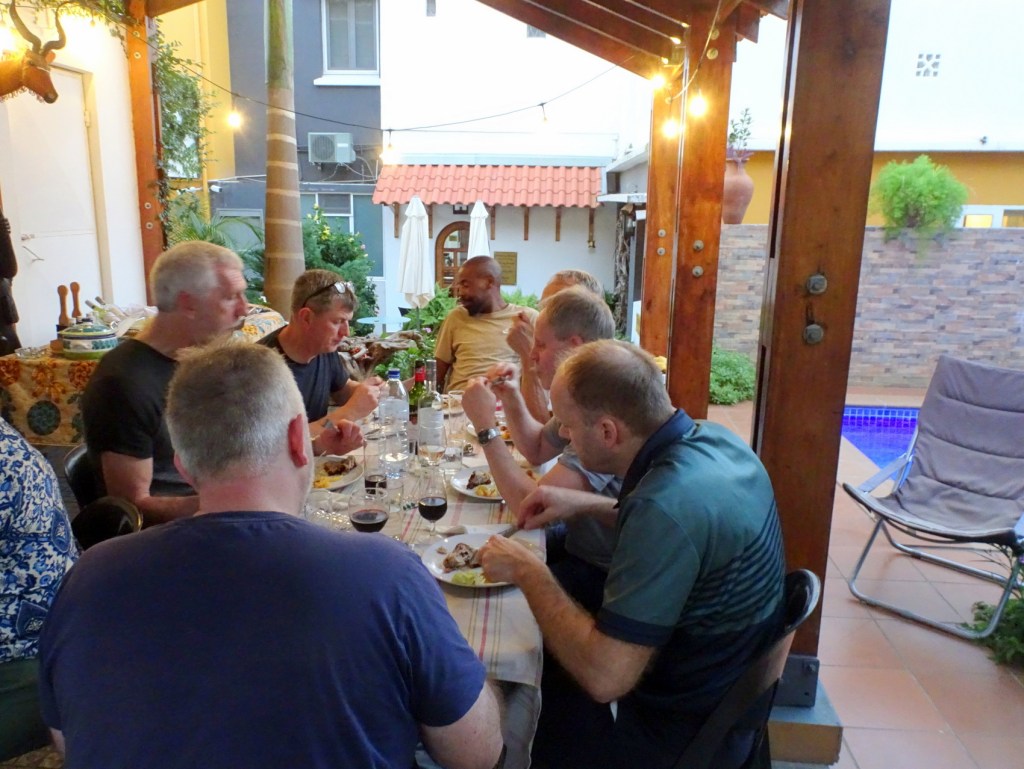Aftensmaden, som var en lækker buffet, blev serveret på den hyggelige veranda. Vore senge kaldte os tidlig til ro – men det var egentlig ok :)