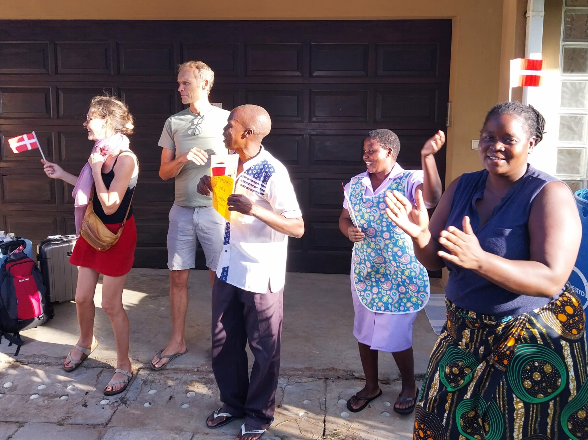 Vi blev hentet af Kurt og vores chauffør Senzu, der kørte os hjem til syngende velkomst af vort personale, der det næste stykke tid, vil sørge for mad og rengøring i vort skønne hjem: Lindo Mar.
