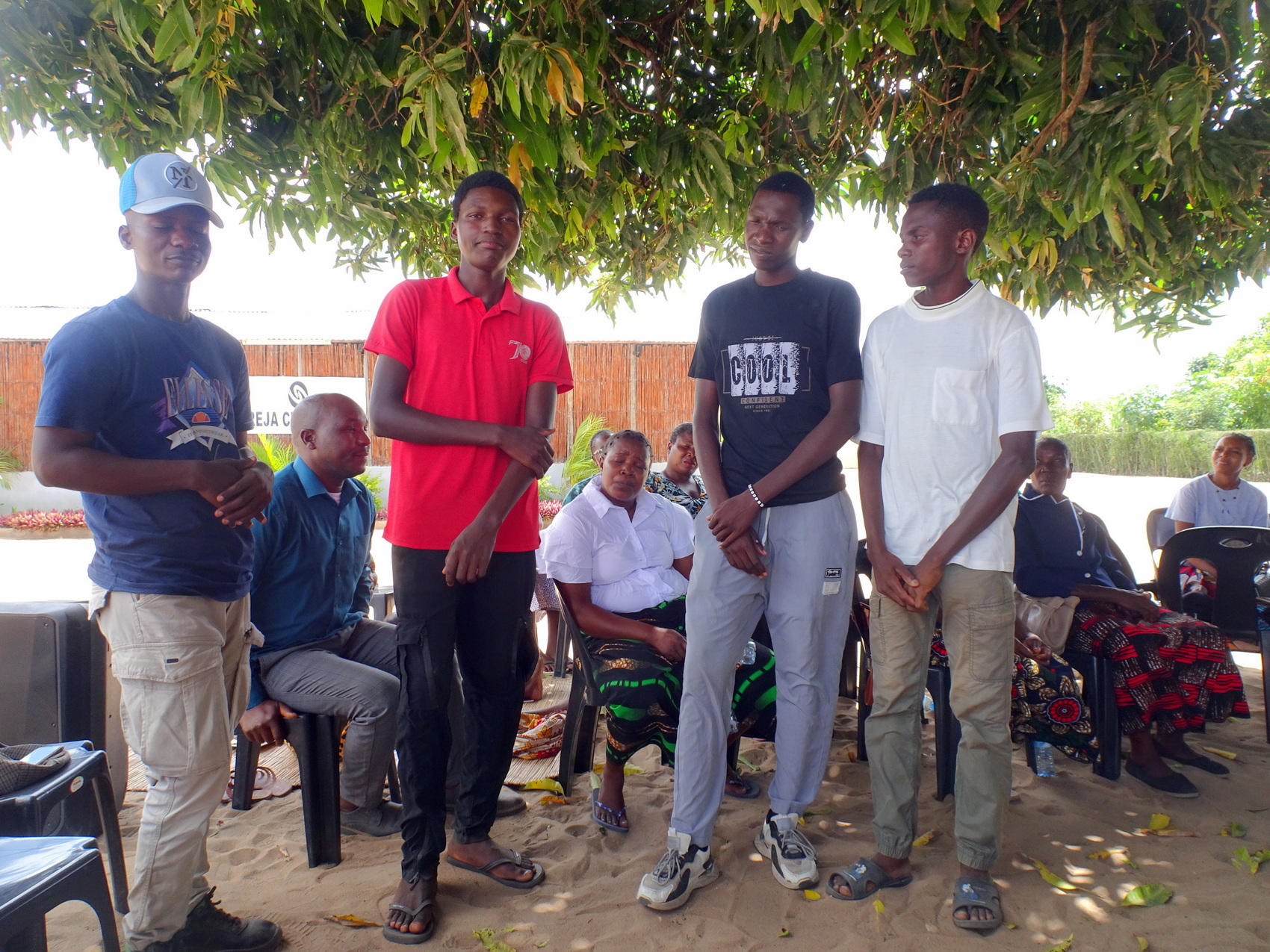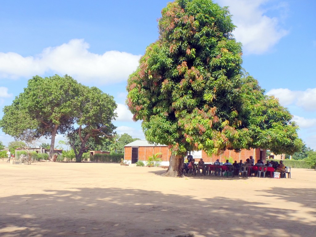 Efter en hjertelig og varm velkomst med både sang, kram og kindkys af hele menighed og præst, blev vi placeret under trækronens svalende skygge. Her blev vi i løbet af dagen, budt på både kaffe, middag, prædiken og lovsang.