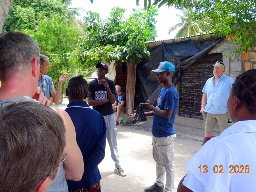 Efterfølgende var de med os ude og besøge afgangselev ´24. Sylvester, der havde oprettet en kyllingefarm. Vi kunne både se og høre, at de lokale var impornerede, dette var vi også.