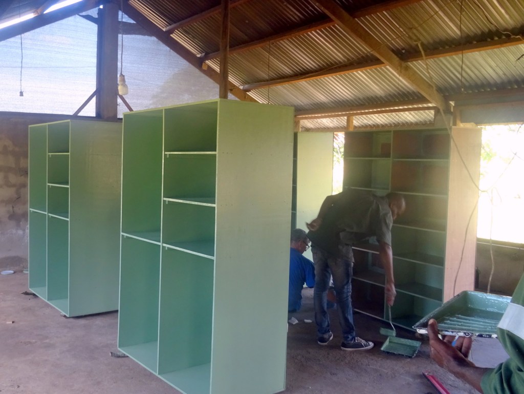 Skolen føltes tom, nu da eleverne ikke længere er på skolen, men samtidigt giver det os en god mulighed for virkelig at få noget fra hånden. 50+ deltagerne fordelte sig hurtigt på div. arbejdsopgaver, så allerede til frokost var det tydeligt for enhver, at der var blevet arbejdet ihærdigt; køkkenet var malet støvet grønt og opbygningen af skabe var under udvikling. Malingen af murene udendørs var udfordret af regnbyger fra tid til anden, men var ved godt mod.
