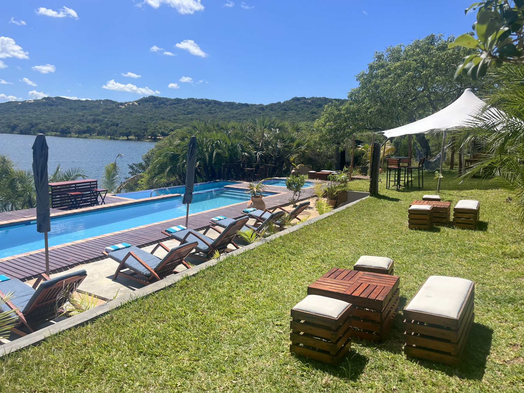 Og os, der inden turens start hellere ville have tilbragt dagen på Wotomi Agri, tilgav straks Lisbet, der havde insisteret på at vi skulle afsted til dette luksus sted. Vi fik afspændende massage, sol på kroppen ved skønne pools, og virkelig lækker mad. Imens vi kunne se langt ud over den smukke sø.